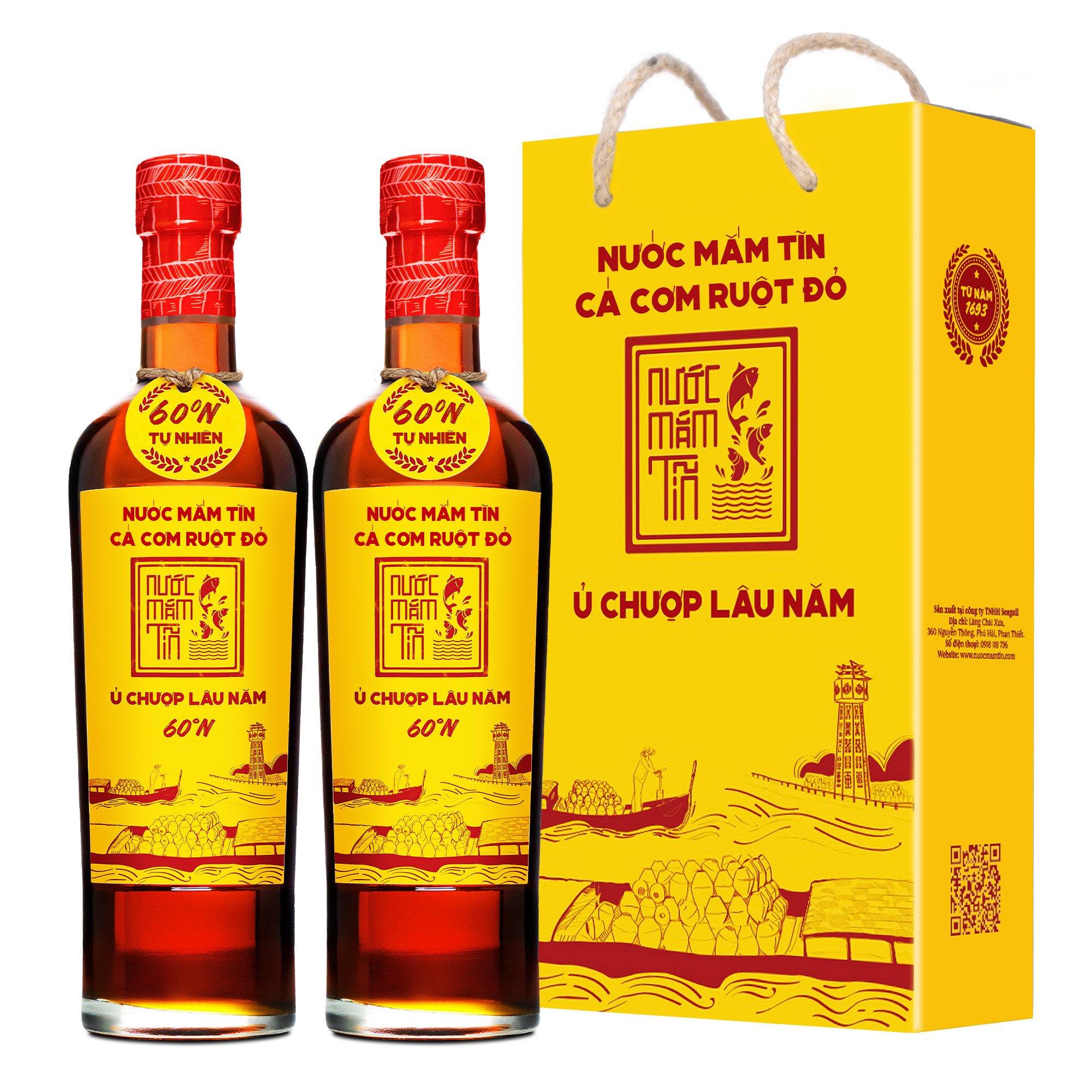 CẶP 2 NƯỚC MẮM TĨN CÁ CƠM RUỘT ĐỎ 60N – CHAI THỦY TINH 500ML