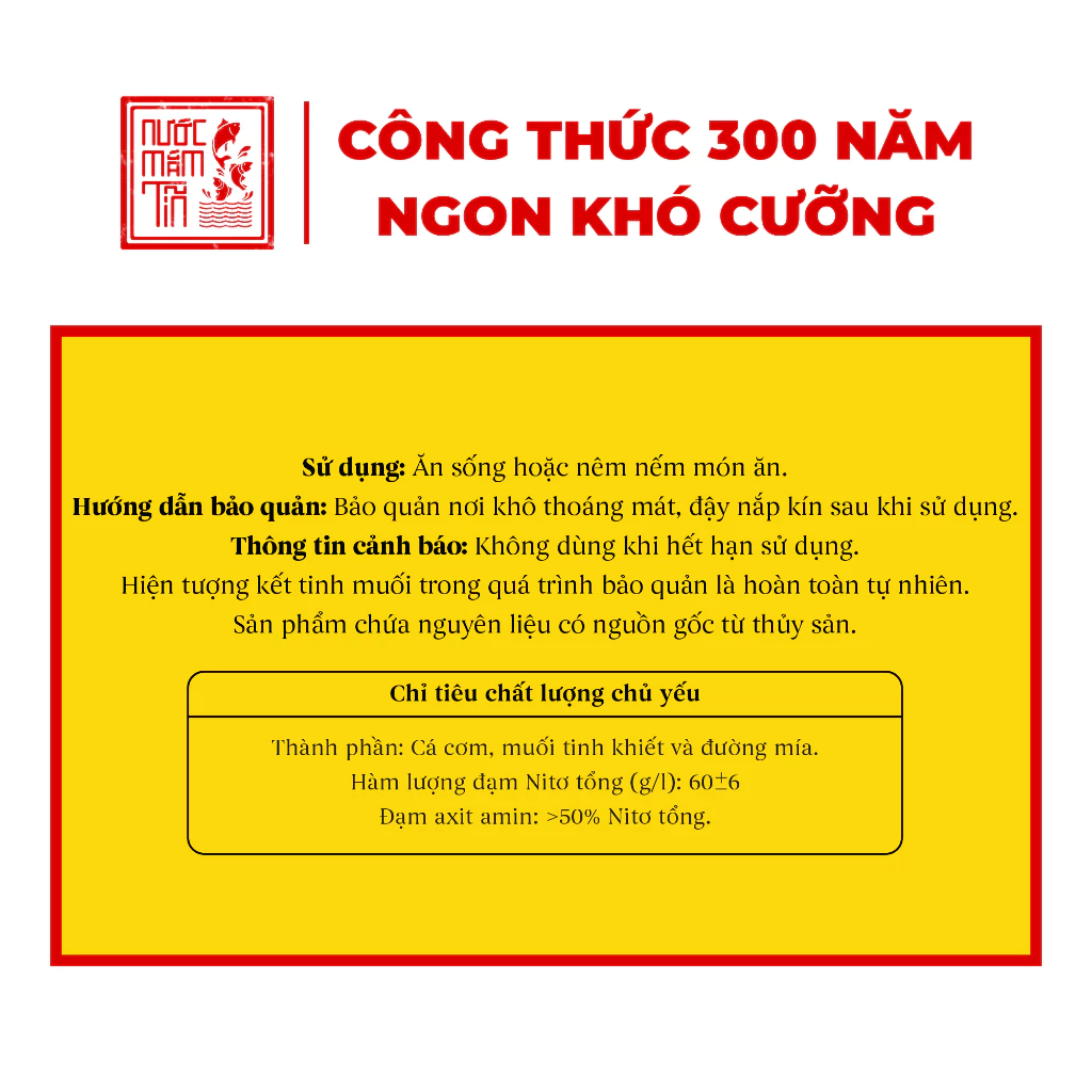 Có thể xuất hiện kết tinh muối hoặc màu sậm dần – đây là hiện tượng tự nhiên của nước mắm truyền thống, không ảnh hưởng chất lượng.