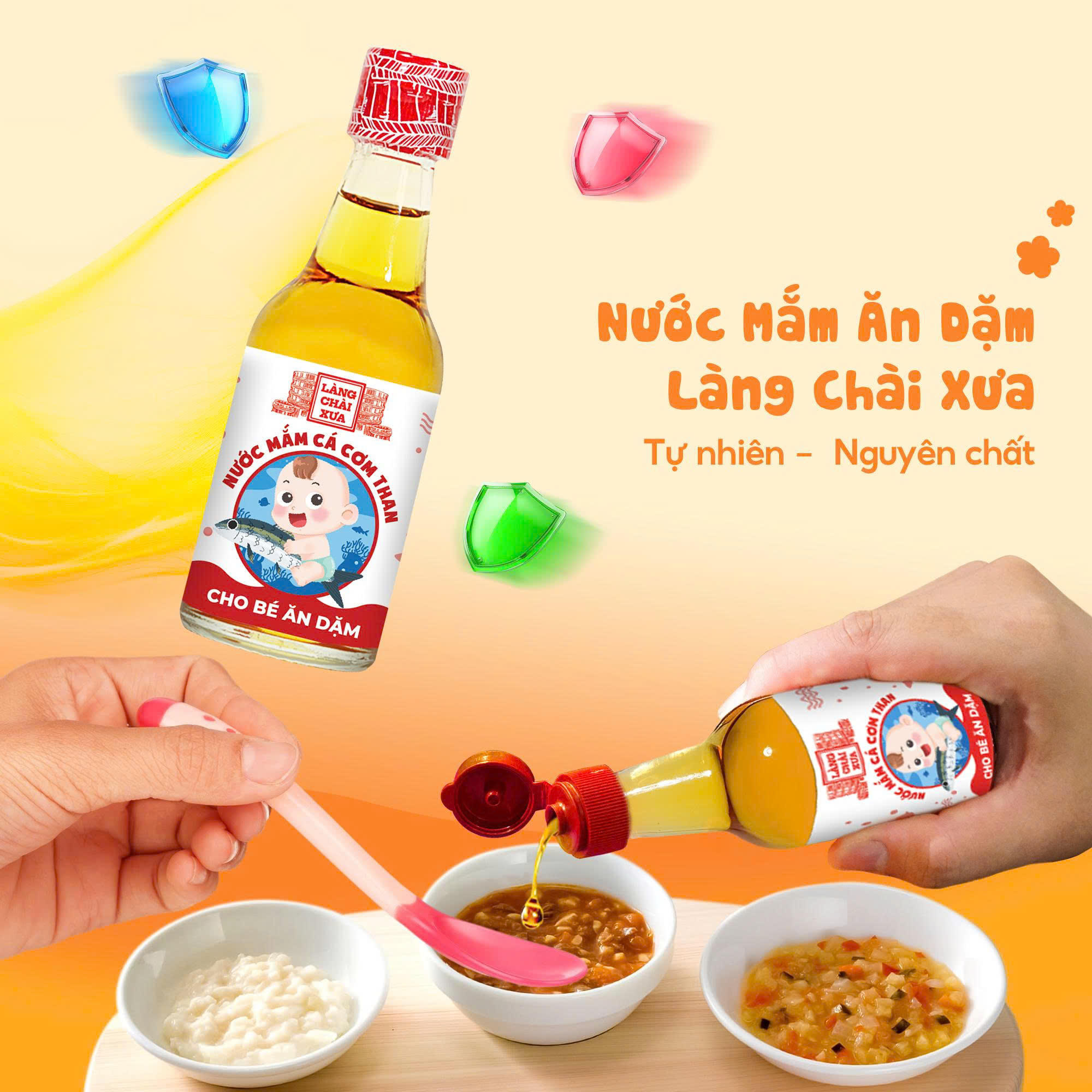 NƯỚC MẮM CÁ CƠM THAN LÀNG CHÀI XƯA CHO BÉ ĂN DẶM (60ML) – AN TOÀN, NHIỀU CÁ ÍT MUỐI, BỔ SUNG VITAMIN VÀ DƯỠNG CHẤT